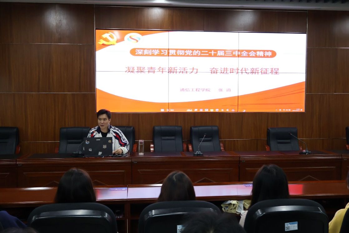 为通信学子点亮前行之路,激励他们在新时代为国家通信事业贡献力量,展现当代老员工的责任与担当,2024年10月17日下午13: 00,公司党总支 党员流动服务站张逍老师在智联楼B座B307会议室召开主题为"凝聚青春新活力,奋进时代新征程"的10月思政大讲堂。首先,张逍老师围绕党的二十届三中全会展开讲解。在背景方面,他指出当前处于以中国式现代化全面推进强国建设、民族复兴伟业的关键时期,国际形势复杂、国内发展面临诸多挑战,......