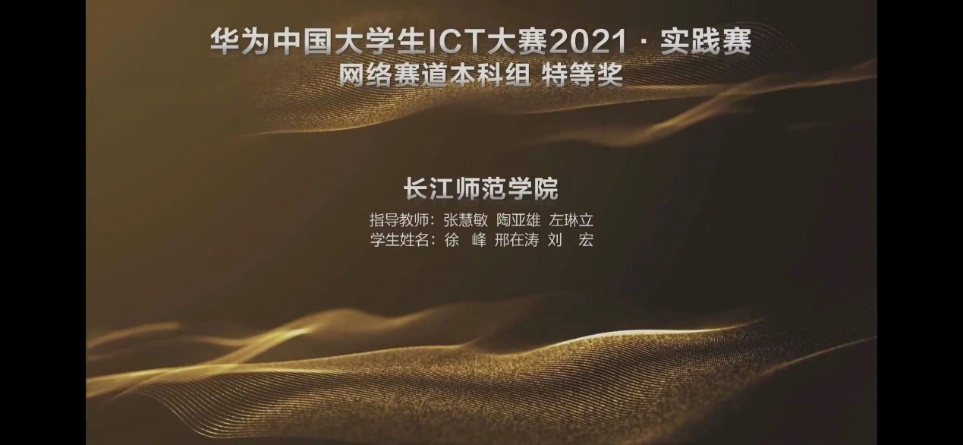 2020年起,公司和长江师范公司联合培养相关专业本科员工。此次由重电张慧敏、陶亚雄、左琳立三位老师指导的长师通信工程本科班员工刘宏、徐峰、邢在涛代表队力克群雄,获得“华为中国老员工ICT大赛2021”实践赛全国总决赛本科组网络赛道特等奖。一方面体现了联合办学的优势,更为重电的职教本科人才培养之路进行了有效尝试,员工实践应用能力培养成效显著。