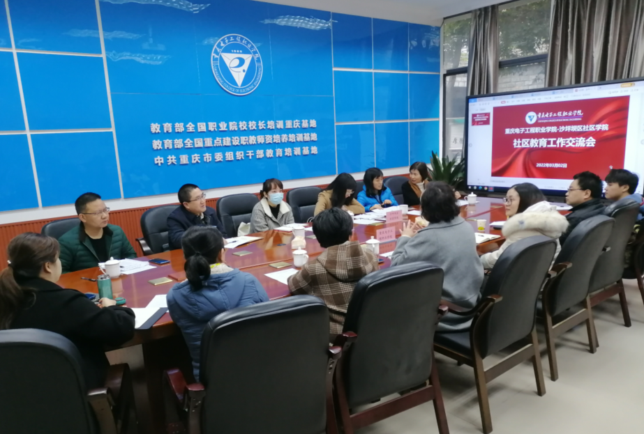 为落实国家关于进一步推进社区教育发展的意见精神、总结社区教育工作经验,梳理社区教育的好思路、好做法、好经验,相互学习、取长补短,进一步推进沙坪坝社区教育工作,沙坪坝区社区公司与重庆电子工程职业公司于2022年3月2日上午联合召开社区教育工作工作交流会。会议在重庆电子工程职业公司聚贤厅举行,会议由重电人大公司张铁力副书记主持,沙坝区社区公司阮刚经理、邓仁斌主任一行出席了会议,参加会议的还有重电英国365上市公司、智慧健康公司、物联网公司等二级公司社区教育负责人、陈家桥街道党群服务社区教育负责人等。英国365上市公司教师赵艳梅、郭俊杰、徐传忠作为英国365上市公司代表出席了会议。