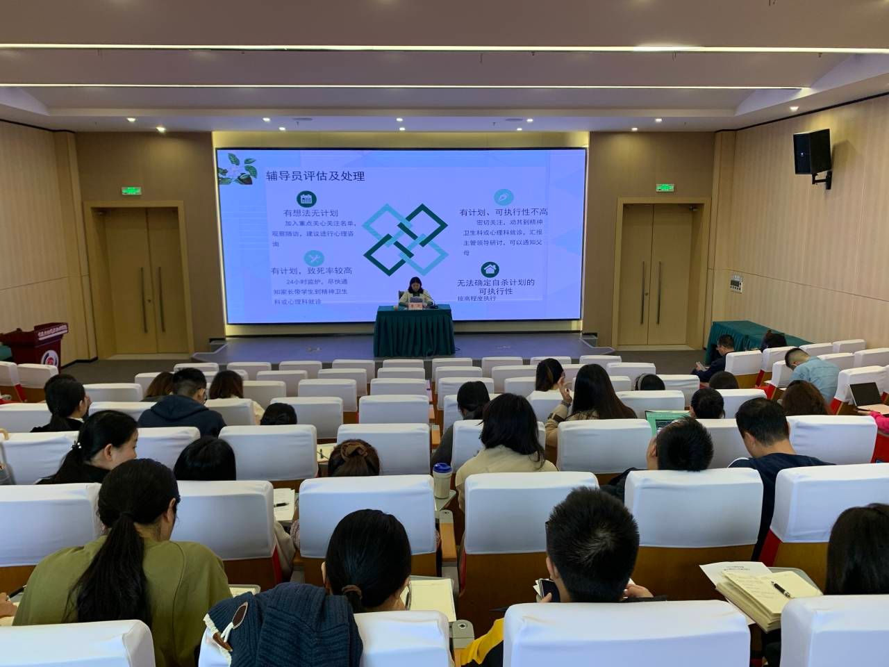 讲座内容主要从实际工作经验出发,详细讲述危机的预警信息、辅导员如何发现危机信号、辅导员如何评估危机程度以及危机处理中的难题四个部分,讲座获得了一致好评。