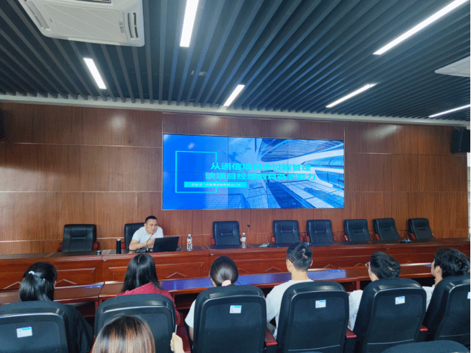 贺经理结合个人丰富的项目管理经验,首先对通信类项目启动、项目规划、项目执行、项目监管控制、项目验收等整个实施流程中的管理要求进行了介绍,分析了每个阶段需要具备的专业知识、技能和素质能力。然后从项目经理管理的角度出发,建议在校员工需要提前培养沟通、组织、协调、问题解决、风险管理和时间管理等综合能力,为今后的岗位就业筑牢坚实基础。同时也鼓励员工要坚定信念,打牢专业基础,毕业后积极投身于国家通信基础建设之中。
