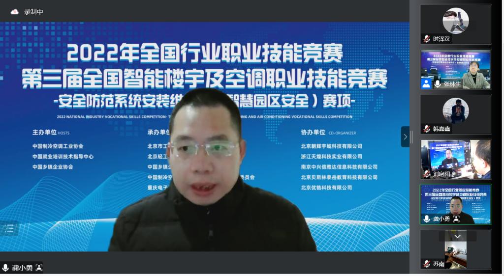安全防范系统安装维护员(智慧园区安全)赛项是人社部全国行业赛二类赛事,由中国制冷空调工业协会、中国就业培训技术指导中心、中国乡镇企业协会主办,重庆电子工程职业公司承办,南京中兴信雅达信息科技有限公司承办;考虑到疫情原因,本次赛事采用了线上线下结合的办赛模式,主会场设置在重庆电子工程职业公司,各省根据实际情况设置分会场,选手根据当地政策,选择分会场的线下参赛或者独立线上参赛。