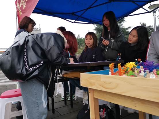 在活动现场,干事们热情得为大家介绍沙盘,并带大家感受沙子从指间缓缓流出,用心摆放人物、动植物、房子、交通工具等等,创造出内心小小世界。