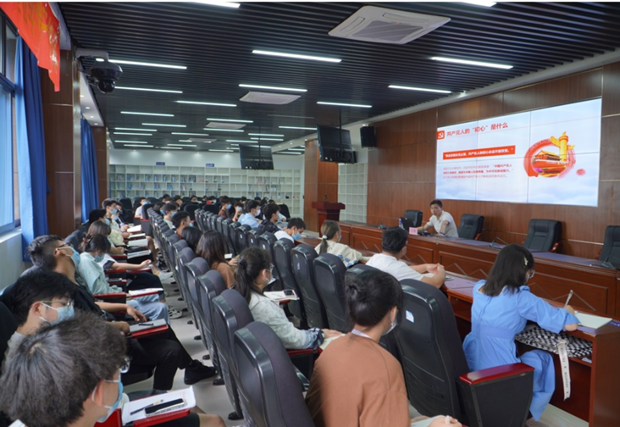 接着,思想政治辅导员张逍老师带领我们回顾百年辉煌党史,重温百年奋斗的恢弘史诗。张老师说道:我们要用党的奋斗历程和伟大成就鼓舞斗志、明确方向,以党的光荣传统和优良作风坚定信念、凝聚力量,用党的实践创造和历史经验启迪智慧、砥砺品格,同历史对话,我们才能更好认识过去、把握当下、面向未来。