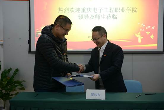 2019年12月2日,重庆电子工程职业公司党委副书记唐玉林、组织部部长刘洪光、公司党总支书记曾晓宏、经理陶亚雄、移动通信技术教研室主任赵阔以及骨干教师等一行来到中国电信重庆沙坪坝分公司,进行党支部“党建翼联”签约仪式和校企合作“校外顶岗实习基地”授牌。