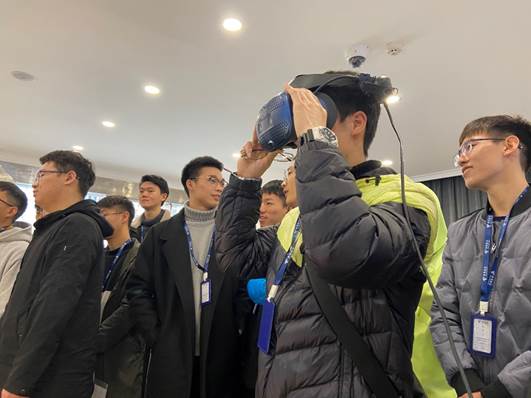 实习的员工们戴上VR眼镜体验实时远程监控