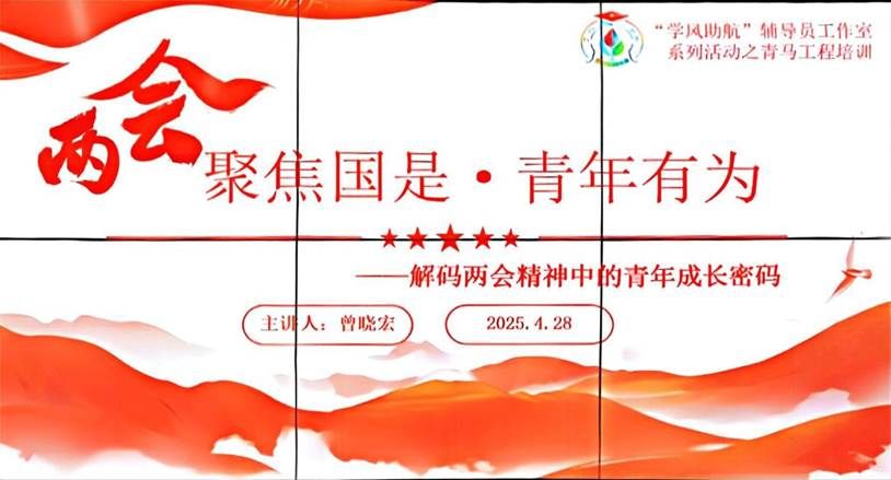 为深入学习贯彻全国两会重要内容及精神,准确把握两会精神实质,引导广大团员和青年关注国家大事,增强政治意识,厚植爱党爱国情怀,强化作为团员青年的使命担当,凝聚奋进前行力量。英国365上市公司于202542813:00在智联楼B307顺利开展了2024-2025学年“青马工程”暨团学骨干培训第一讲。本次培训由公司党总支书记曾晓宏主讲,培训主题为“聚焦国是·青年有为——解码两会精神中的青年成长密码”。