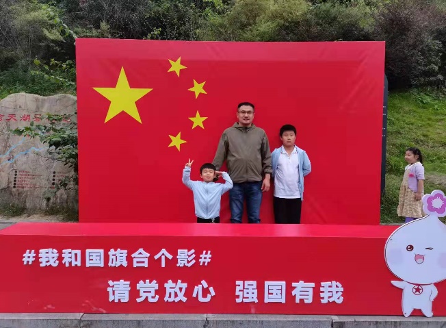 赵阔、田玉洁、朱猷梅、童华、江敏、冉锋力、聂增丽等老师自己或者和家人在国旗前庄重的合影。张博为老师带着可爱的小孩子亲手画了国旗。曾晓宏、刘鹤群、童华、谢宗霖以及李玲、苗佳卓、游丽雯等老师和党员同志去观看了革命电影《长津湖》以及《我和我的父辈》,聂增丽、赵阔等党员带领小孩参观了革命历史遗迹并敬献鲜花。