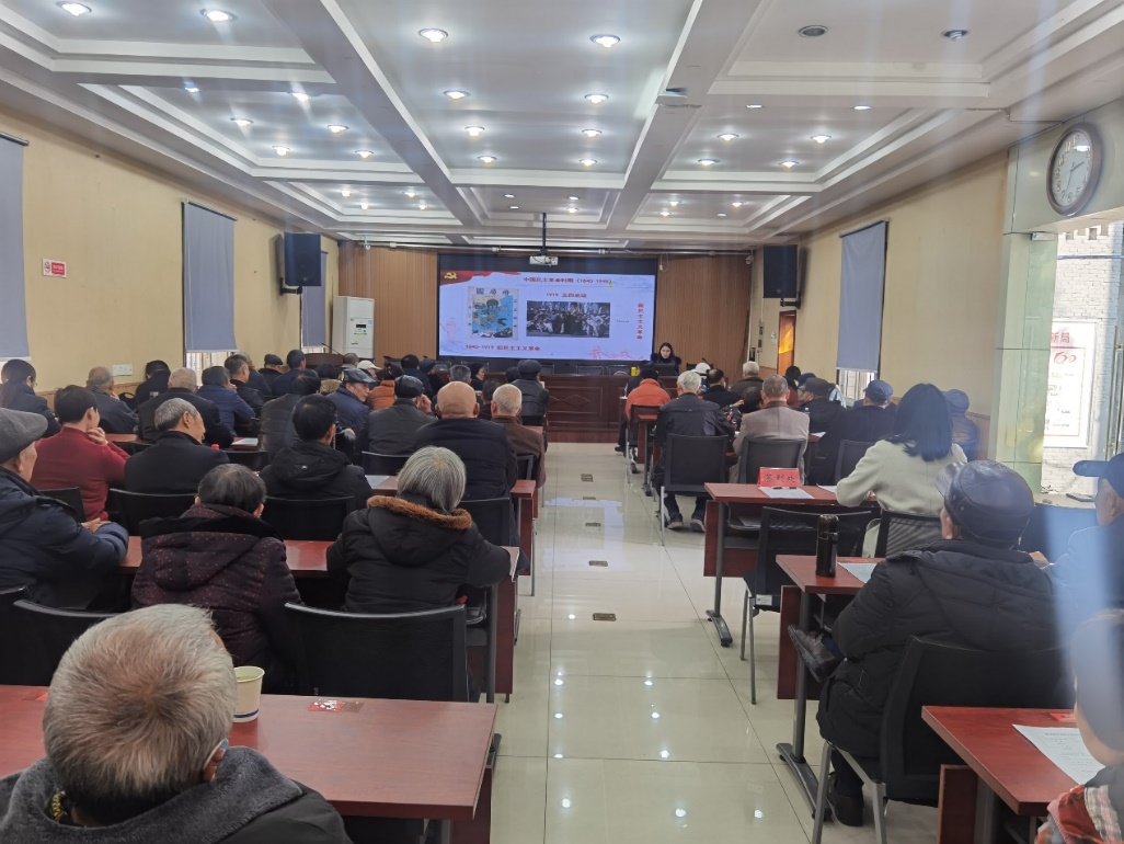 为深入贯彻落实习近平总书记在党史学习教育动员大会上的重要讲话精神,把党的成功经验传承好、发扬好,通工与通运党支部书记张慧敏、教师党员毛焱颖于2021年11月30日赴陈家桥街道办事处为50余名退休党员开展“重温党史,不忘初心”讲党史活动,回顾党的一百年征程,从历史中汲取思想的力量、信仰的力量、道德的力量、实践的力量。