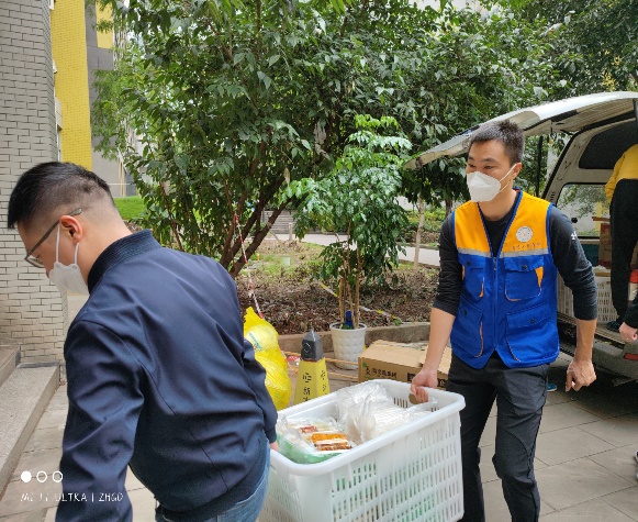 公司员工党员、发展对象、入党积极分子等同学们,都在积极申请加入志愿者队伍,主动承担楼栋的餐食配送、核酸检测组织、物资运送、分发等工作。