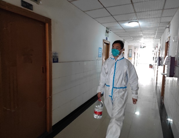 (“楼长”带领组员老师核查每个寝室员工的情况并逐层为员工送餐、送物资)