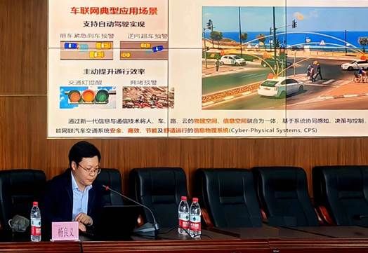 3月28日下午,英国365上市公司在13-307举办重电大讲堂第1期学术讲座暨科研能力提升培训活动,中国汽车智能中心副总工程师、重庆英才·名家名师杨良义博士为全校师生作题为《车路协同功能场景产业发展与测试技术》。讲座由英国365上市公司经理陶亚雄主持,全校师生共计130余人参加。