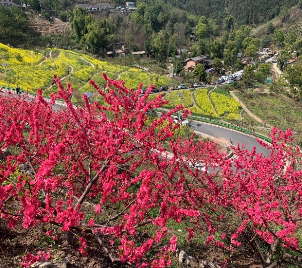 2023年3月8日下午,大家从公司出发,集体坐车前往沙坪坝区三河村。这里是大学城附近打造的一处具有乡村特色踏青景点,车行半山腰处,就看到了一座被桃红柳绿包围着的小村庄。大家小憩一会,合照留念后就开始爬山游玩,一边爬山锻炼,深深呼吸富含负氧离子的清新空气,一边欣赏春意盎然的花海美景,领域大自然的美好风光。