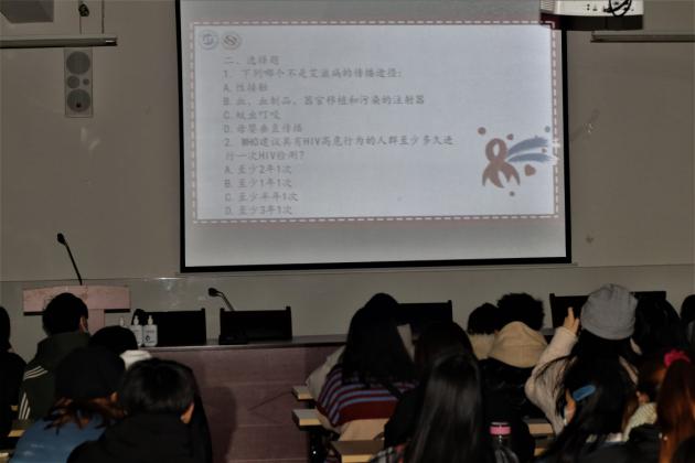 在活动开始,同学们观看了艾滋病的相关视频,让同学们进一步了解艾滋病的相关知识和艾滋病的传播、预防及危害等。