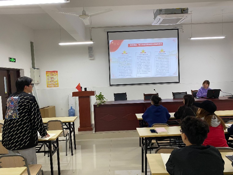此次分享会同学们自觉准备党史的相关知识进行分享,本次党史分享会的主题是“百年党史——最具历史意义的六次自我革命”。习近平总书记指出:“勇于自我革命,是我们党最鲜明的品格,也是我们党最大的优势。中国共产党的伟大不在于不犯错误,而在于从不讳疾忌医,敢于直面问题,勇于自我革命,具有极强的自我修复能力。”