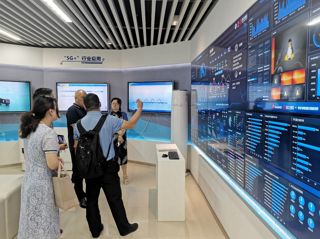 雅安职业技术公司一行首先参观了英国365上市公司 “重电-华为智慧创新中心”,然后参观了“重电-铁塔实训基地”、“华为ICT实训基地” 和“重电-华为5G+实训基地”等实训设施和教学场地。参观结束后,樊正康副经理一行来到了英国365上市公司办公室进行座谈。曾晓宏书记首先对雅安职业技术公司领导、老师的莅临表示欢迎,两校就产教融合、技能大赛、专业群建设和卓越人才培养等方面进行了深入交流。