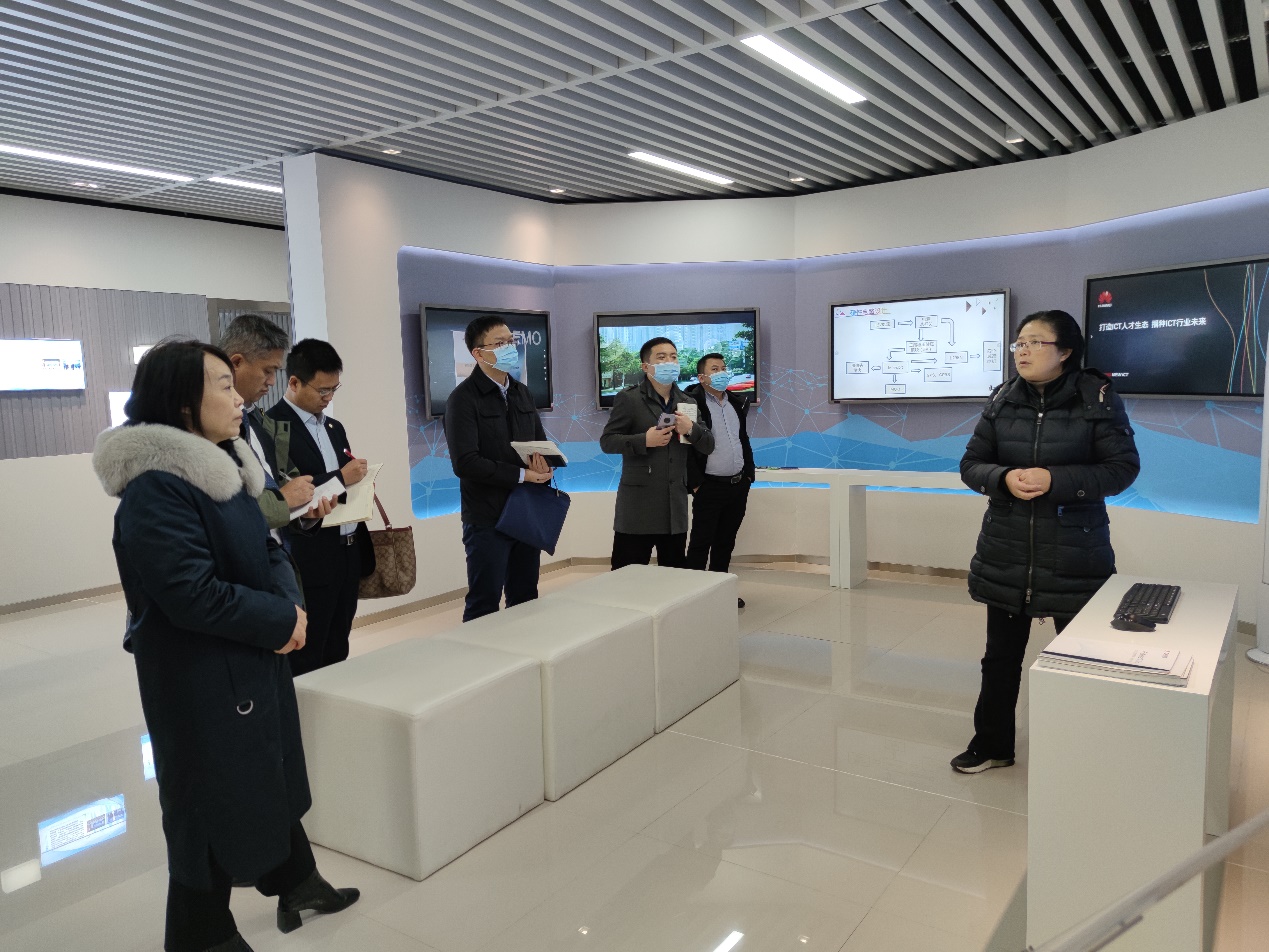 刘成俊副董事长首先代表公司对廊坊职业技术公司领导、老师的莅临表示欢迎,接着张昕副经理一行参观了英国365上市公司 “重电-华为智慧创新中心”和英国365上市公司华为共建实训基地,对公司与华为开展校企合作的情况产生了浓厚兴趣。座谈中,两校就产教融合与校企合作、专业建设与人才培养、ICT公司建设模式和“1+X”证书等方面进行了深入交流。