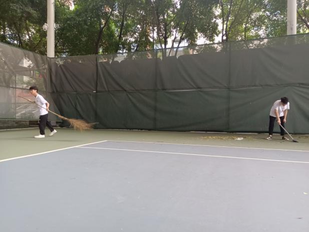 井然有序的劳动现场不仅展现了同学们热爱劳动,积极向上的良好风貌,而且成员们在互帮互助中也感受到了集体的力量。在大家的共同努力下,网球场的环境变得焕然一新,同学们脸上也露出欣慰的笑容,这是对自己劳动的肯定,对“劳动最光荣”的深切体会,更有对传承奉献精神的收获与感触。