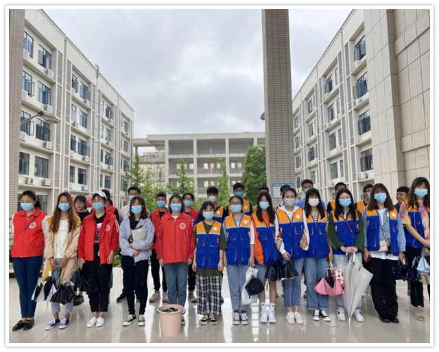 中午十二点半,两个公司的志愿者冒着风雨,带着盆子,拿着抹布,于九栋平层集合。合影后,在两位队长的带领下来到图书馆,经图书馆负责人交代完注意事项后,在队长的分配下,便开始了如火如荼的打扫工作。