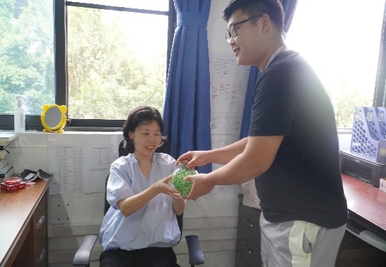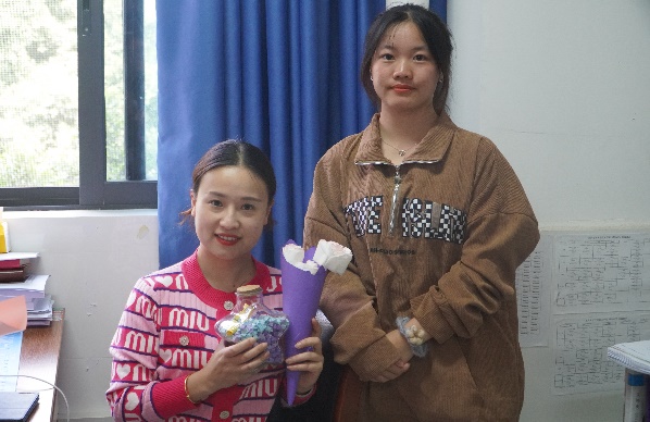 活动最后,志愿者们来到辅导员和学管科办公室,与老师们分享此次活动的趣事并将准备好的星星与纸花赠予老师们,为老师送上最美好的祝福,年年花相似,但不同的却是如花一样的笑脸。