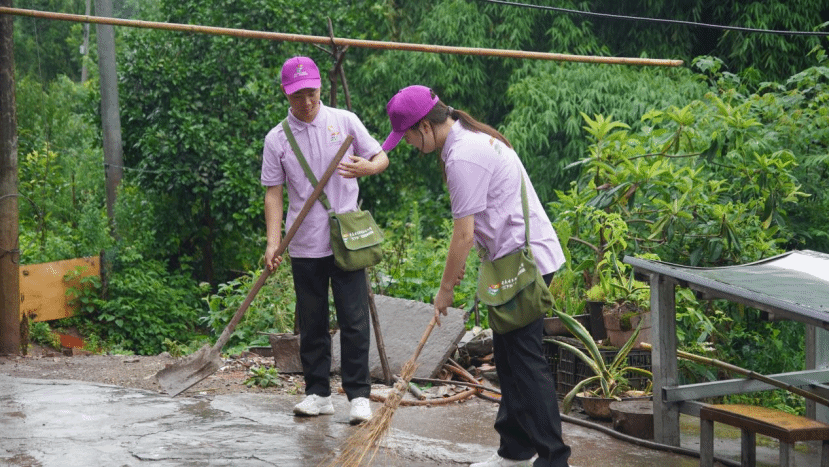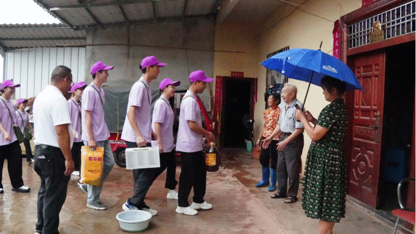 2025年6月30日这天,我们带着菜籽油、大米、牛奶等慰问品,踏着泥泞来到潘加同、杨宏友两位老党员家中。细雨落在衣服、帽檐上,也落在我们的心间,那份对老党员的敬意愈发浓烈。