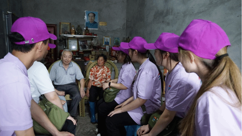 在和党员们交谈完后,我们齐声唱起了《没有共产党就没有新中国》。激昂的歌声冲破雨幕,在山村的巷道间回荡。老党员们跟着节奏轻轻拍手,浑浊的眼睛里泛起光亮,仿佛回到了那段激情燃烧的岁月。那一刻,歌声成了跨越年代的桥梁,让我们真切触摸到红色精神的温度,也让两代人的心在雨中紧紧相依。