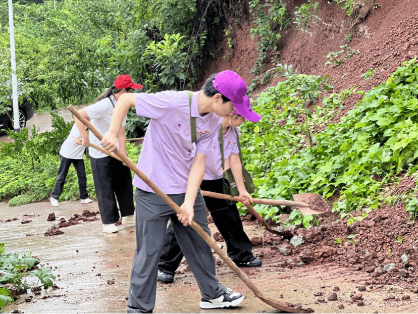淅淅沥沥的雨仍未停歇,但我们没有丝毫退缩。我带头拿起扫帚,和同学们默契地清扫老党员家门前的泥泞小路。扫帚划过地面,泥水顺着扫帚尖溅起,打湿了裤脚和鞋面,冰凉的触感透过布料传来,却没有一个人停下手中的动作。从屋檐下的积水到屋内的角落,我们细致地擦拭、整理,让老屋在雨雾中透出整洁的暖意。那一刻,我仿佛看到了红色精神在我们这一代青年身上的传承,它不再是抽象的概念,而是实实在在的行动。