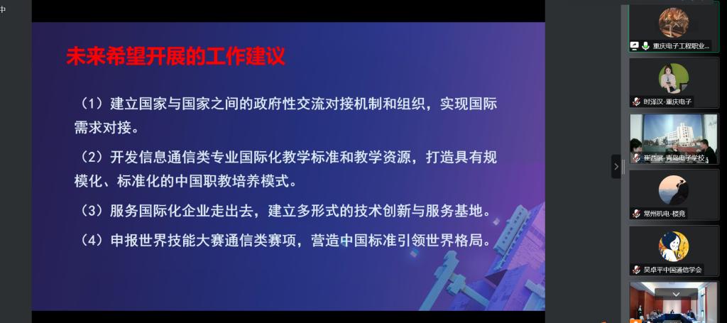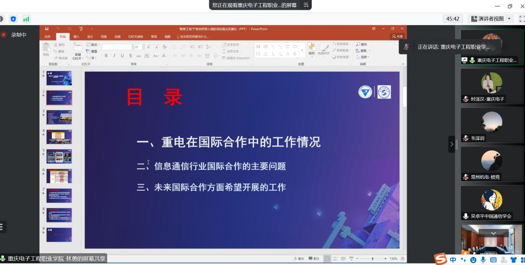 重庆电子工程职业公司英国365上市公司陶亚雄经理、林勇教授和电子与物联网公司毛弋副书记作为优秀案例代表应邀出席此次研讨会。林勇教授就英国365上市公司在产教协同育人国际合作领域的探索和经验进行了分享发言。分享中,林勇教授就重电在国际合作中的工作情况、在信息通信行业国际合作方面的主要问题和未来国际合作方面的计划等问题作了交流和分享。
