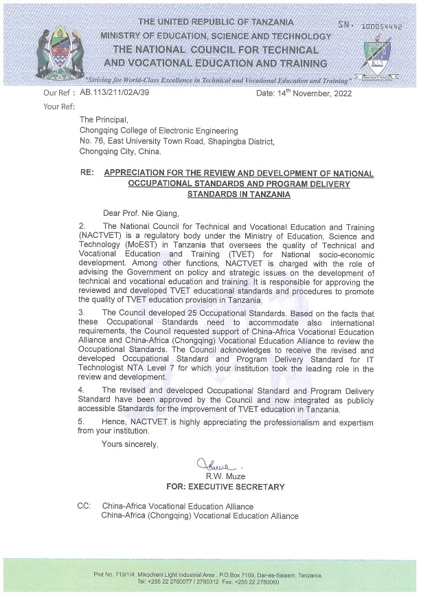 公司主持的职业标准获坦桑尼亚官方认证并纳入国家职业教育体系